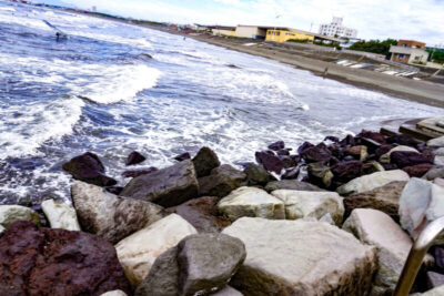 私たちがよく知っている「テトラポット」とは違い、片瀬漁港では「消波石(しょうはせき)」という大きな石が使われていました。これは、船を守るために波の勢いを弱める役割があるそうです。