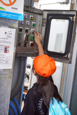 港には、白灯台と赤灯台があり、船が安全に進むための目印になっています。また、片瀬漁港では主に大型定置網という漁を行っており、1日で600kgもの魚が捕れると聞いて、みんなその多さに驚いていました!