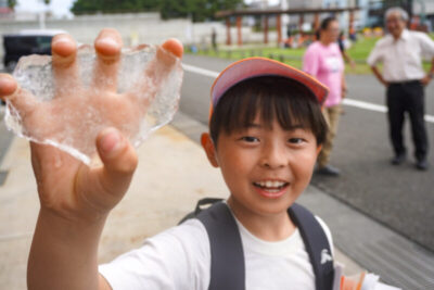 この丸い氷を使うのは、魚の体に傷が付かないようにするための漁師さんの優しい工夫だそうです。