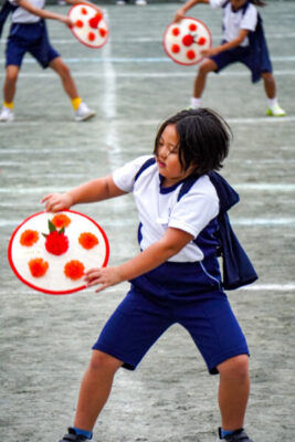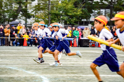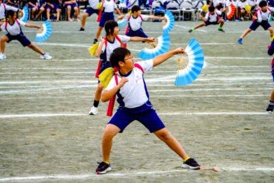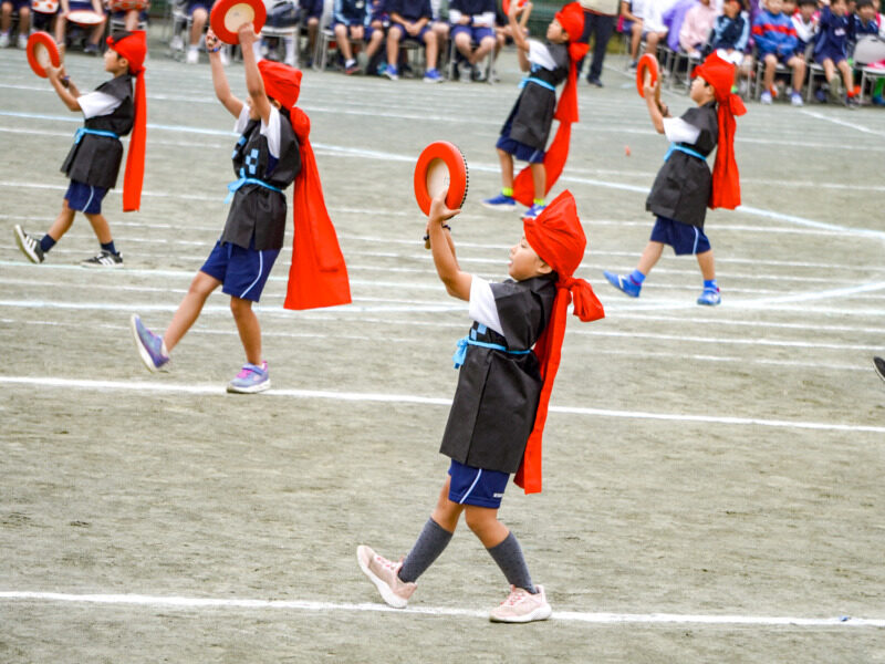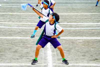 台風の影響で、朝から小雨が降るあいにくの天候となりましたが、子どもたちの熱気と、ご来校いただいた保護者の皆様の力いっぱいの声援のおかげで、会場は終日、熱気に包まれました。子どもたちは、いつも以上の力を発揮し、最後まで競技や演技に全力で取り組みました。