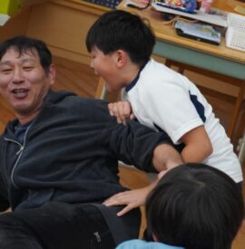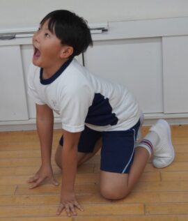 特に盛り上がったのは「ジェスチャーゲーム」です。ある班では、子供たちが「ガオー!」と力強く吠えながら、獲物役の先生に襲いかかる場面も……! 「えっ、何だろう?」「ライオンかな?」と声が上がる中、正解はなんと「虎」。 中には難しい問題もありましたが、みんなで知恵を出し合い、笑顔あふれる素敵なひとときとなりました。