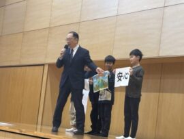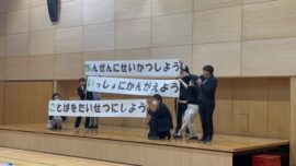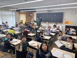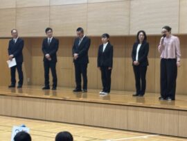 桜の花びらが舞う中、2026年度始業式は新1年生を除く2年生から6年生がそろいました。児童代表執行委員長からのお話、校長先生のお話、新任の先生の紹介、転入生の紹介がありました。新しい目標や意欲を胸にいだいた子も多いでしょう。素敵な1年にしましょう。
