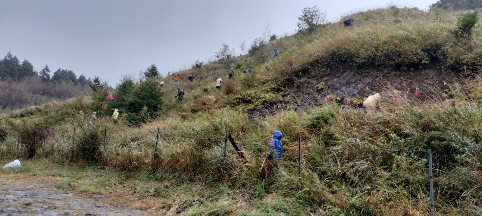 湘南学園からの今回の参加者は、中学2年生から高校2年生までの有志10名。前日までの雨天の影響を受けて自然観察ハイキングは中止となり、秦野駅から丹沢の菩提峠に直行・直帰する行程となりました。ちなみに、現地で前年度の卒業生と会いました。別の団体のメンバーとして植樹活動に参加しているとのことでした。素晴らしい!植樹する苗木には、目印としてピンクのリボンを結びます。主催者の話によると、今回は800本の苗木を植えたそうです。800本も植えたのに、まだまだピンクリボンが目立たないエリアがいっぱいでした。山の雄大さ・壮大さに脱帽です(笑)こうした活動を続けることで、そして次の世代に受け継いでいくことで、少しでも森を守ることに繋がって欲しいと願います。ふと思ったのですが、植樹と教育には似ている点があります。地道に見守って後押ししても、期待通りに成長するかは数十年先まで分かりません。でも、何もせずに放置しておいたら枯れ山となってしまうであろう山が、我々の小さな活動で少しずつ息を吹き返していく・・・。どんなに大きなものに立ち向かう際にも無駄なものなんて一つもないのだということを実感するし、そう信じたくなります。