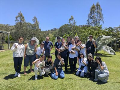 まずは、どの生徒の顔からも笑顔があふれていて、オーストラリアでのファームステイを予想以上に楽しんでいたようなので、私達教員一同とてもホッとしました。訪れたお宅の中には、14,000エーカーもの土地を所有する本格的なファーマーの方がいらっしゃいました。14,000エーカーという広さはどのくらいのものなのか、想像もつきませんよね。おおよそサッカーグラウンド10,000個分の広さになるようです。このホストファミリーに「あなたの土地は、地平線ぐらいまであるのですか?」と尋ねると、「それを越えています」との返答が返って来ました! このファミリーは代々カウボーイのお仕事をされているとのことで、生徒達は、牛やカウボーイのお手伝いをする犬達に、地面を叩いて指令を伝えるためのムチの使い方を教わっていました。(詳しくはビデオをご覧下さい)