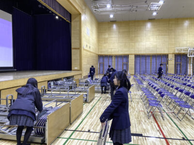 実は、説明会開催の直前は定期試験直後という非常にタイトなスケジュールでした。連絡事項の徹底や準備を万全に整えることが難しい状況でしたが、広報委員の皆さんは、その困難を乗り越えて、素晴らしい働きをしてくれました。会場案内や受付では、ご来校いただいた皆様がスムーズに説明会に参加できるよう、笑顔で丁寧な案内を担ってくれました。さらに、受験生の皆様へお送りする年賀状に、心を込めた温かいコメントを一つひとつ手書きで記入してくれたこと。記入してくれた委員への感謝はもちろん、受験生にそれぞれの思いが届くことを願います。