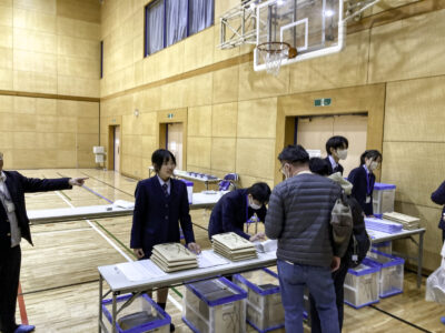 実は、説明会開催の直前は定期試験直後という非常にタイトなスケジュールでした。連絡事項の徹底や準備を万全に整えることが難しい状況でしたが、広報委員の皆さんは、その困難を乗り越えて、素晴らしい働きをしてくれました。会場案内や受付では、ご来校いただいた皆様がスムーズに説明会に参加できるよう、笑顔で丁寧な案内を担ってくれました。さらに、受験生の皆様へお送りする年賀状に、心を込めた温かいコメントを一つひとつ手書きで記入してくれたこと。記入してくれた委員への感謝はもちろん、受験生にそれぞれの思いが届くことを願います。