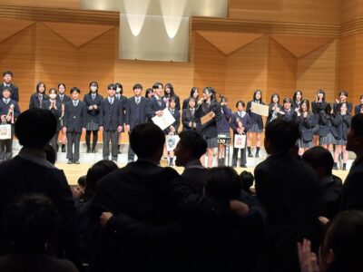 審査の結果、各学年の「金賞」「銀賞」が発表されました。 そして、全クラスの頂点に輝いたのは中学3年A組! アンコール曲『3月9日』では、最高学年らしい深みのある歌声が会場を包み込み、客席からは大きな拍手が送られました。