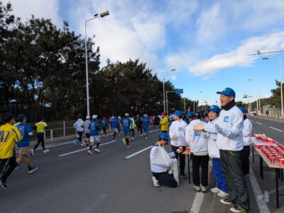 ・マラソンは個人競技だが、走っている人がみんなで助け合って走っているところは、すごいなと思った。