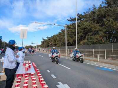 先日開催された「湘南藤沢マラソン」に、湘南学園高校野球部がボランティアとして参加しました。