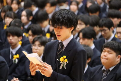 卒業生を代表して答辞を述べたのは、荻野くんです。