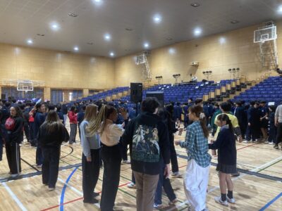 音楽やダンスを通じてコミュニケーションをとるうちに、ガチガチだった表情も徐々にほぐれ、会場にはたくさんの笑顔が広がり始めました。