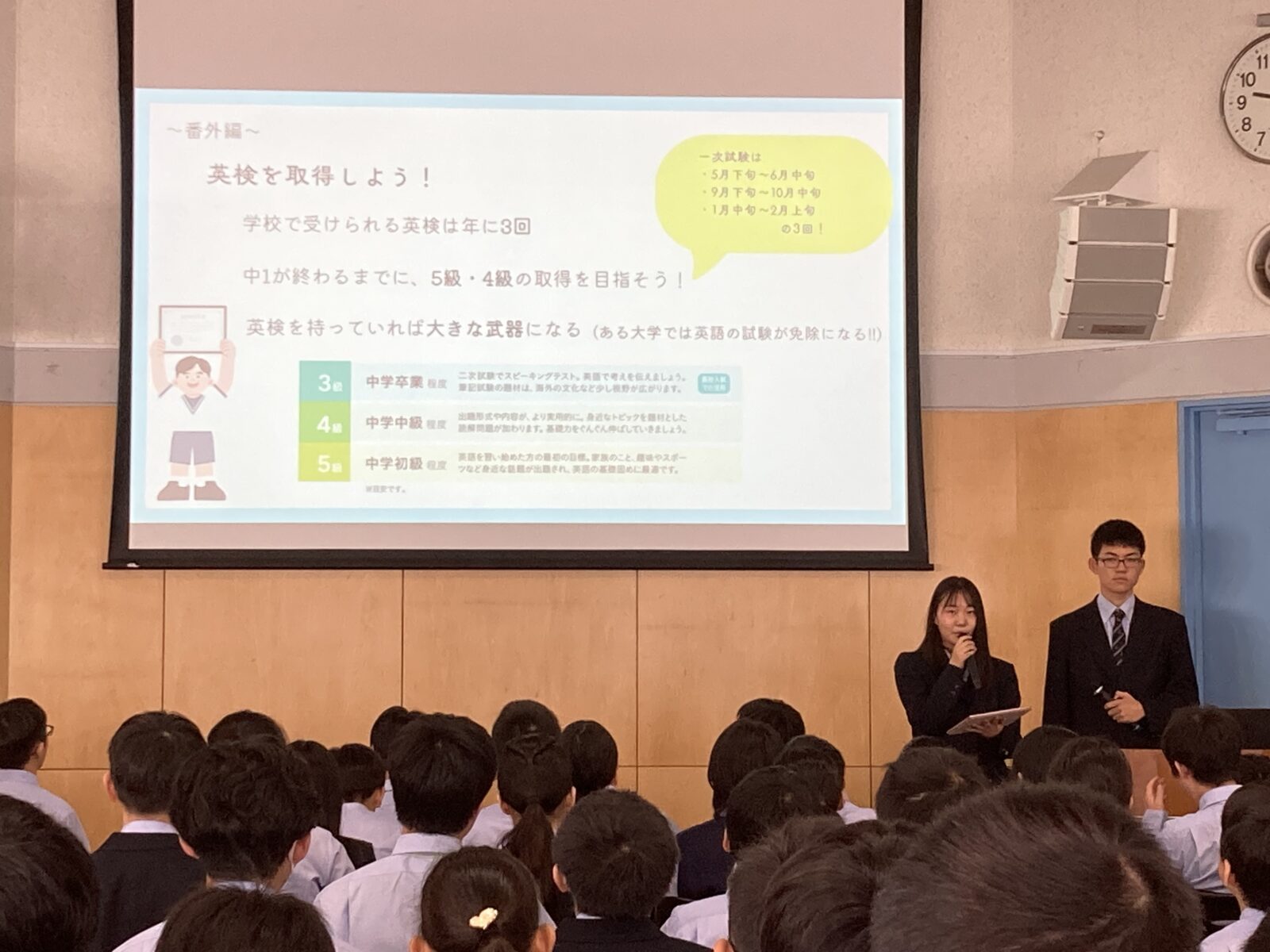 4月11日、先輩たちが中1生に湘南学園の学校生活について説明し、「クラス活動」をサポートする「新入生オリエンテーション」が行われました!