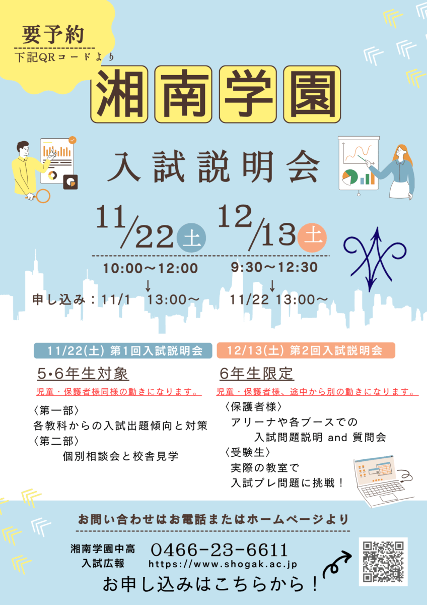 湘南学園では12月13日(土)に最後の「入試説明会」を実施いたします。